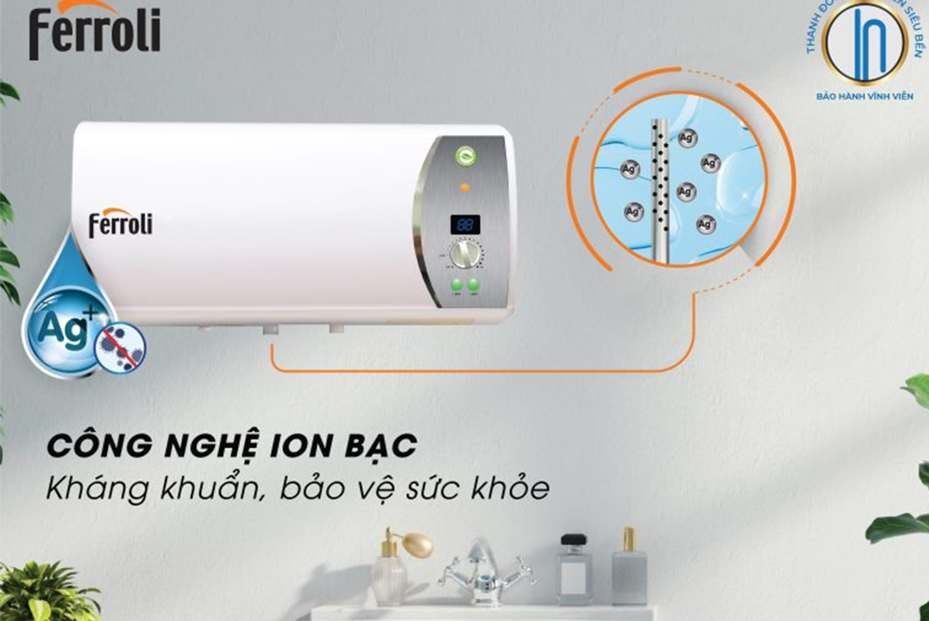Bình nóng lạnh Ferroli Verdi 30 AG+ có bình chứa dung tích lớn tới 30 lít, cung cấp nước nóng liên tục cho gia đình bạn. Đặc biệt, máy có hệ thống ion bạc kháng khuẩn giúp nguồn nước tắm luôn được đảm bảo an toàn.