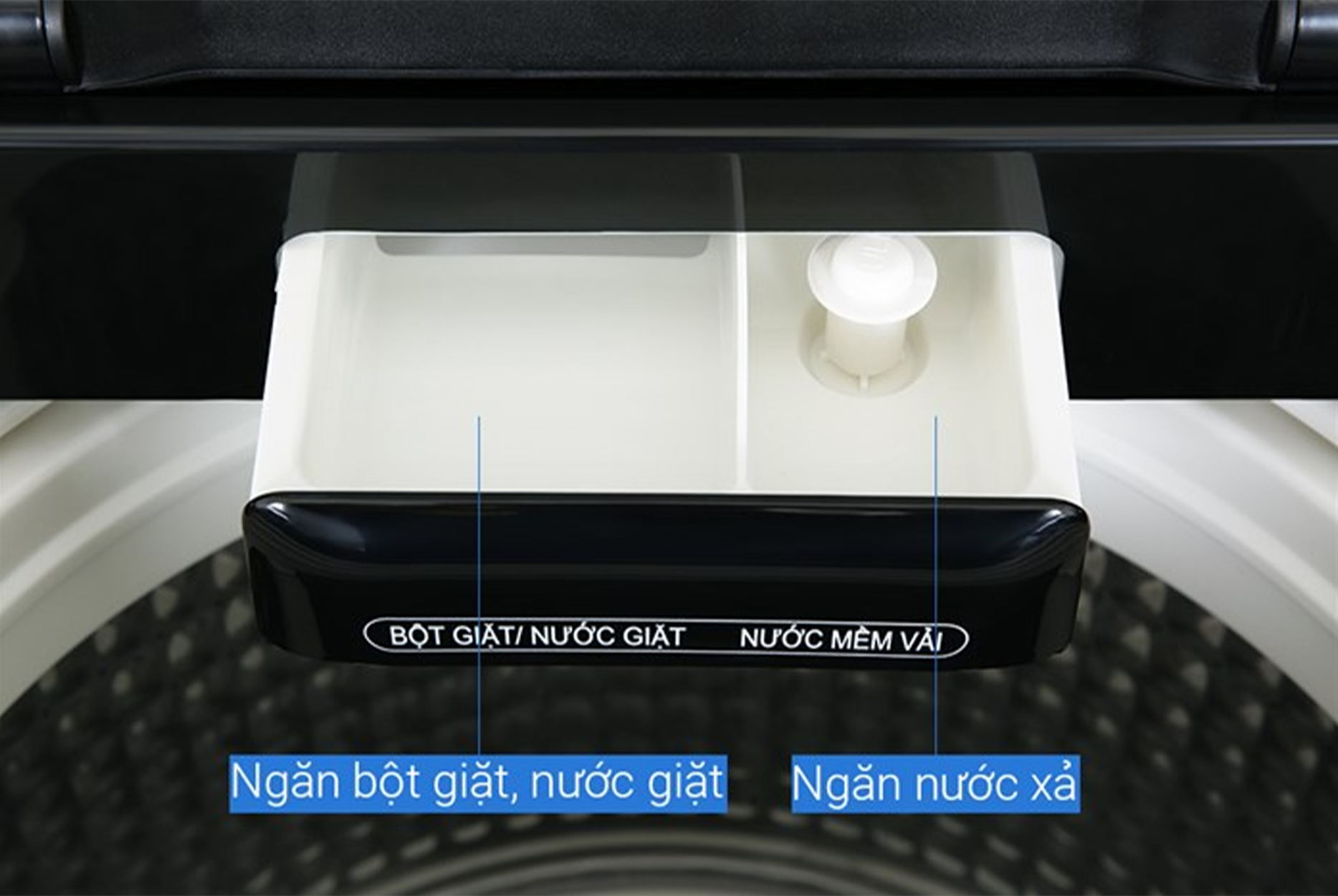 - Bảng điều khiển song ngữ Anh - Việt dễ sử dụng kết hợp với núm xoay để lựa chọn chương trình giặt làm cho việc thao tác trở nên thuận tiện hơn cho người dùng. Bên cạnh đó, bảng điều khiển được đặt phía sau cũng giúp người dùng dễ dàng hơn trong việc vận hành máy giặt.