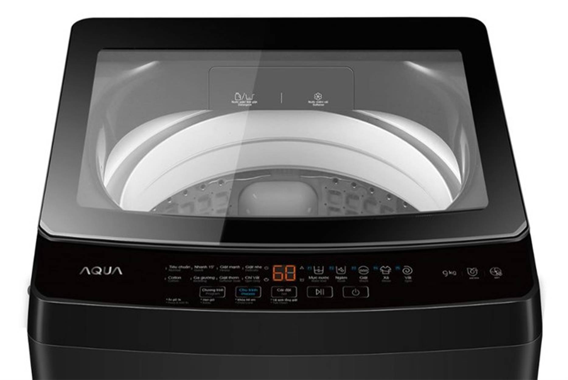 - Máy giặt Aqua 9 kg AWM9-316K(B) thuộc kiểu máy giặt lồng đứng - nắp trên được thiết kế tinh giản với tone màu đen chủ đạo hợp thời và tinh tế.