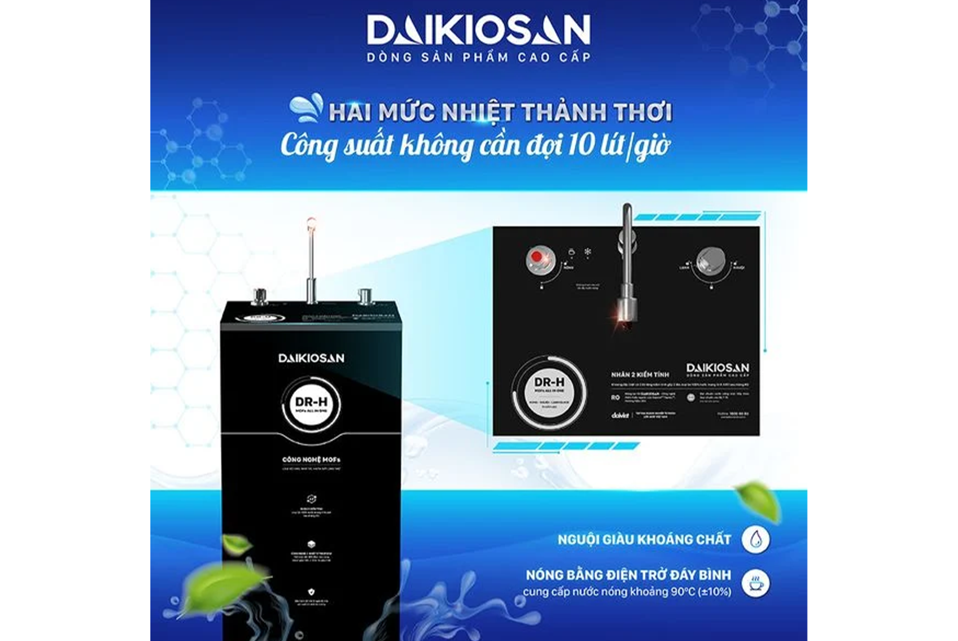 Máy lọc nước nóng nguội lạnh Daikiosan DN301 công nghệ tiên phong “ALL IN ONE” không chỉ đảm bảo sự ổn định và hiệu suất vượt trội, mà còn cam kết bảo vệ sức khỏe toàn diện cho cả gia đình bạn.
