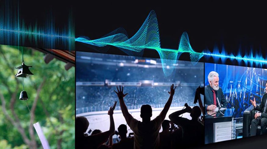 Loa 20W kết hợp OTS Lite tái tạo âm thanh đồng bộ với chuyển động trên màn hình, mang đến trải nghiệm sống động. Adaptive Sound tinh chỉnh chất âm phù hợp từng nội dung, Q-Symphony đồng bộ loa tivi với loa thanh Samsung để tạo hiệu ứng âm thanh vòm mạnh mẽ hơn.