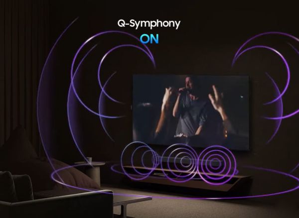Công nghệ OTS Lite (Object Tracking Sound Lite) cho phép âm thanh di chuyển theo chuyển động hình ảnh, tạo cảm giác như tiếng động phát ra từ đúng vị trí trên màn hình. Khi kết hợp cùng loa thanh Samsung qua Q-Symphony, bạn sẽ có được hiệu ứng âm thanh vòm mạnh mẽ, bao phủ toàn bộ căn phòng.
