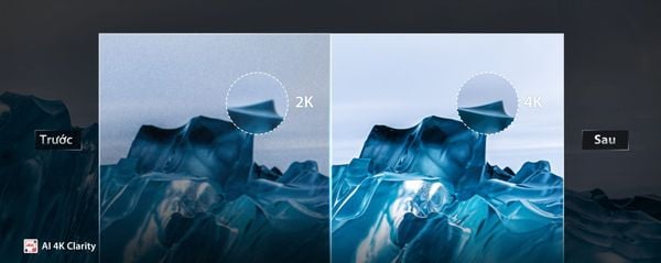 AI 4K Clarity là tính năng nâng cấp nội dung từ Full HD lên gần chuẩn 4K. Công nghệ này không chỉ đơn thuần nhân đôi pixel, mà còn phân tích màu sắc, kết cấu và chi tiết của từng khung hình để tái tạo hình ảnh sắc nét, rõ ràng. Kết hợp với AI Picture Optimizer, tivi tự động điều chỉnh độ sáng, độ tương phản và màu sắc theo từng nội dung, đảm bảo mọi cảnh phim, chương trình thể thao hay cảnh thiên nhiên đều sống động và chân thực nhất.
