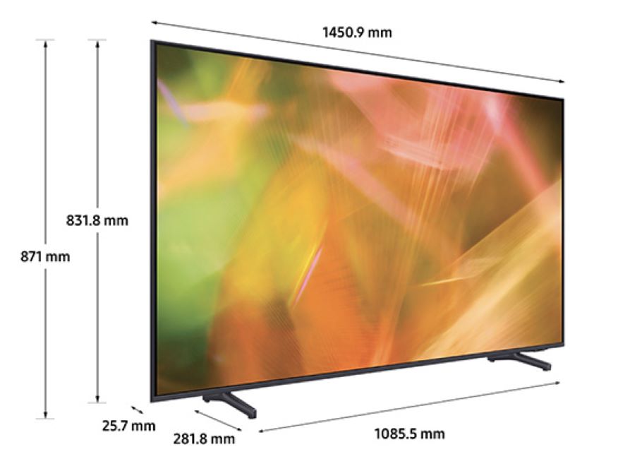 Kích thước Smart Tivi Samsung 4K 65 inch UA65AU8000KXXV