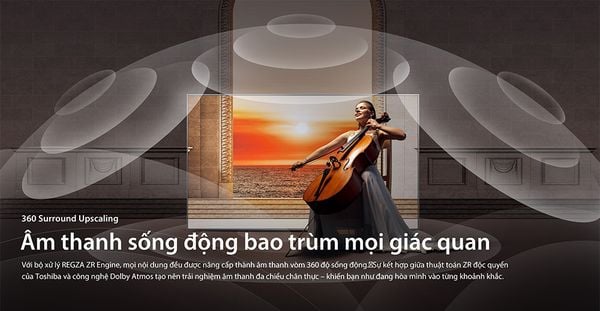 Công nghệ Dolby Atmos tái tạo âm thanh vòm đa chiều, giúp người xem nhận biết được vị trí và hướng di chuyển của âm thanh, mang đến trải nghiệm giải trí có chiều sâu và chân thực.