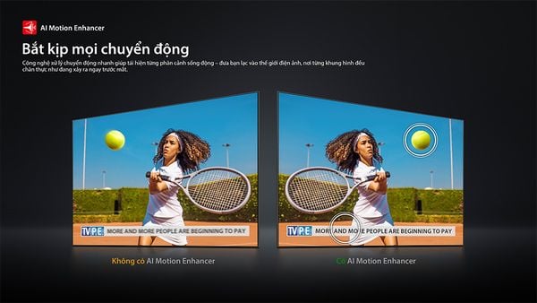 Công nghệ AI Motion Enhancer tối ưu hóa các cảnh chuyển động nhanh, giảm hiện tượng nhòe hình, rất phù hợp khi xem các nội dung có tốc độ cao như thể thao hoặc phim hành động.