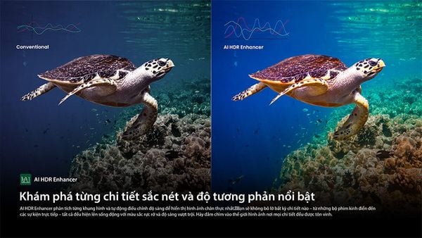 Công nghệ AI HDR Enhancer phân tích và điều chỉnh độ sáng từng khung hình, hiển thị chi tiết hình ảnh chân thực.