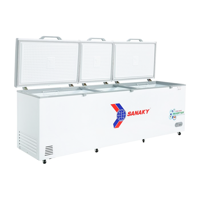 Tủ đông Sanaky Inverter VH 1199HY3 với thiết kế tủ nằm quen thuộc, 3 ngăn chứa rộng rãi cùng sắc trắng tinh tế thích hợp lưu trữ, trưng bày tại các nhà hàng, quán ăn, cửa hàng tiện lợi,... giúp làm tăng vẻ đẹp sang trọng cho không gian. Giảm nỗi lo tiền điện nhờ công nghệ Inverter giúp máy vận hành êm ái, tiết kiệm. Đặc biệt, tủ còn có khả năng tùy chỉnh 3 chế độ làm lạnh đáp ứng tốt cho nhu cầu lưu trữ của người dùng.