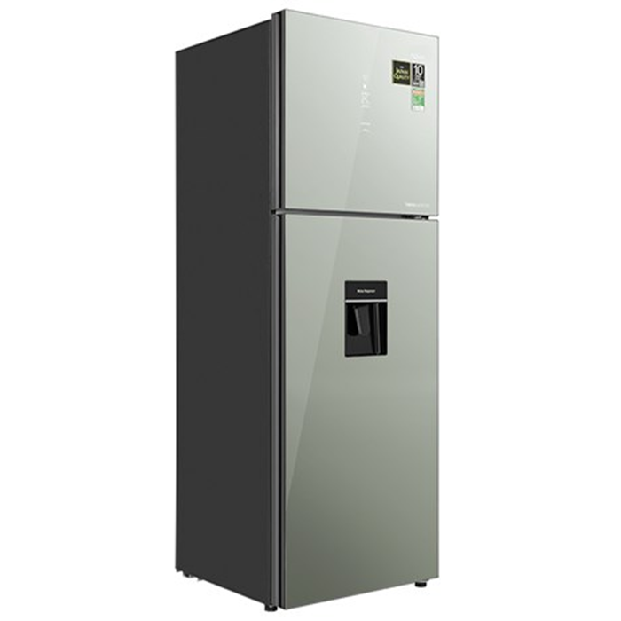 - Aqua Inverter 347 lít AQR-T390FA(WGM) được thiết kế theo kiểu tủ lạnh ngăn đá trên. Trong đó, bề mặt cửa tủ được làm bằng chất liệu gương soi, góp phần tạo nên điểm nhấn tinh tế cho sản phẩm khi đặt trong không gian nhà bếp sang trọng.
