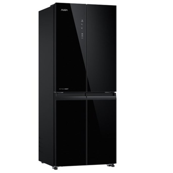 - Cửa tủ lạnh được thiết kế với mặt kính màu đen chủ đạo, mang lại vẻ hiện đại, sang trọng cho không gian bếp. Bề mặt này giúp việc vệ sinh tủ dễ dàng, chống trầy xước và giữ cho tủ lạnh luôn sáng bóng và mới mẻ.