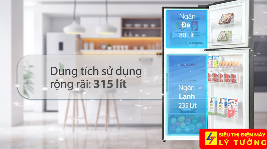- Dung tích 315 lít phù hợp lượng lưu trữ thực phẩm của gia đình từ 3 – 4 người.