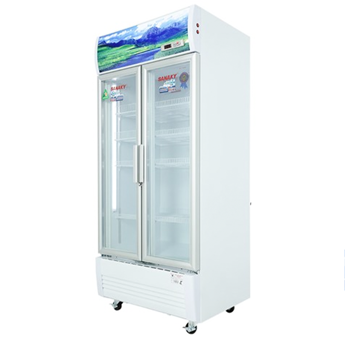 - Tủ mát Sanaky có 2 cánh cửa tủ trong suốt, tinh tế, thuận tiện cất trữ và sử dụng thực phẩm. Đồng thời hạn chế thất thoát hơi lạnh ra ngoài khi mở tủ nhờ thiết kế 2 cánh cửa mở riêng biệt.